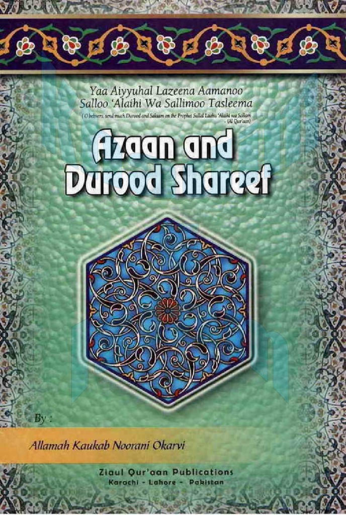 In this book, the distinguished preacher of the world of Islaam and unequalled orator. Allamah Kaukab Nooranl Okarvi has presented a brief but very effective academic research work on the question of reciting Durood Shareef before and after Azaan. And the beauty of it lies in the fact that all arguments given here have been based on books written by those who call reciting Durood Shareef before and after Azaan as an innovation and forbid such recital. The publication of this book has, besides putting a stop to the fatwa-mongering of the opponents, provided comfort and happiness to all the Ahle-Sunnat-wa-Jamna’at. Al-Laah be praised that before and after Azaan and before Iqaamat (when the congregation stands up for Namaaz) Durood Shareef is recited in the Masaajld (Mosques) of the Ahle-Sunnat.
